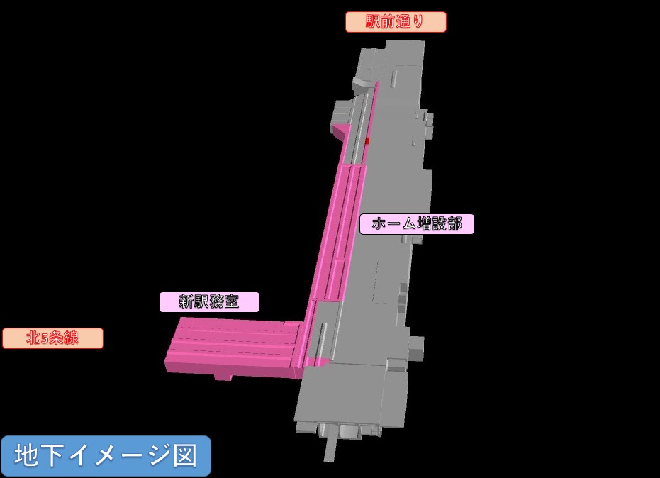 また、現在の駅務室を北5条線地下に移転し、新ホーム及びBF1コンコースを北4西3再開発建物と接続させ移動の円滑化と利便性を向上させます。
